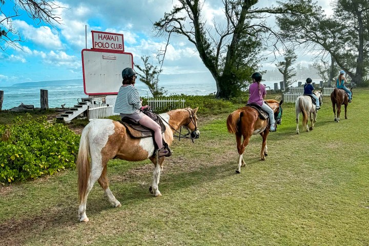During your ride, you’ll have a spectacular view of the ocean and may catch a glimpse of a sea turtle who likes to come feed on the rocks in front of the polo field. Daytime trail rides provide crystal-clear views of the expansive ocean (weather permitting). You can see the marine life below the surface, catch glimpses of playful dolphins or sea turtles, and enjoy the unobstructed visibility of the horizon. The clarity of the daylight enhances the overall experience, allowing you to immerse yourself fully in the coastal beauty of Oahu. You will be riding real working polo ponies who will take very good care of you.