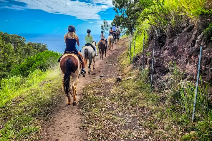 経験豊富な方にも、馬に乗ったことのない方にもお楽しみいただけます。乗馬中は、オアフ島の南部と西部の海岸線の壮大な景色を眺めることができ、トレイル沿いで餌を食べに来る牛を垣間見ることができるかもしれません。また、トレイル沿いでは、牛が餌を食べに来るのを垣間見ることができるかもしれません。
